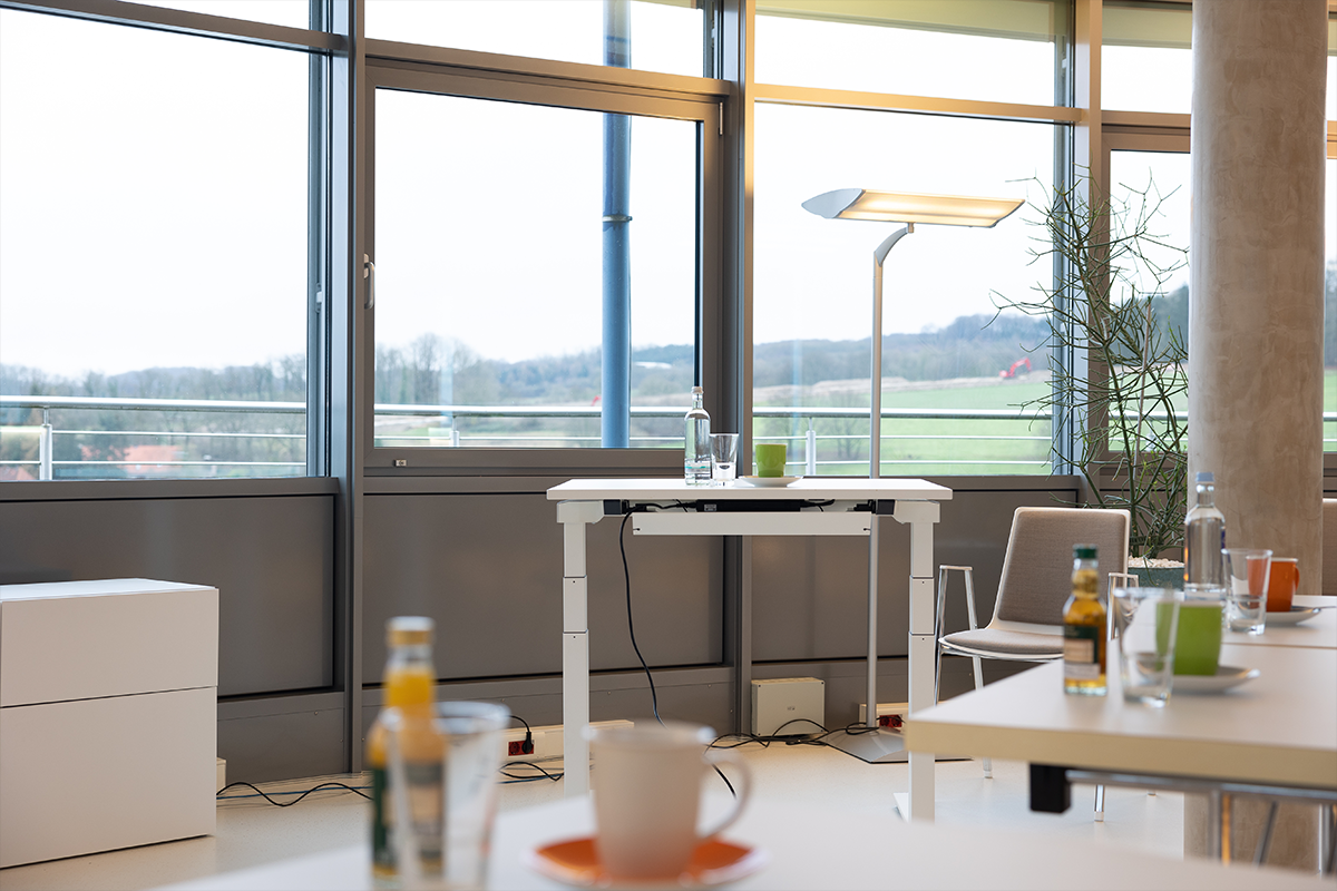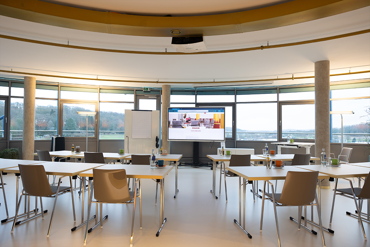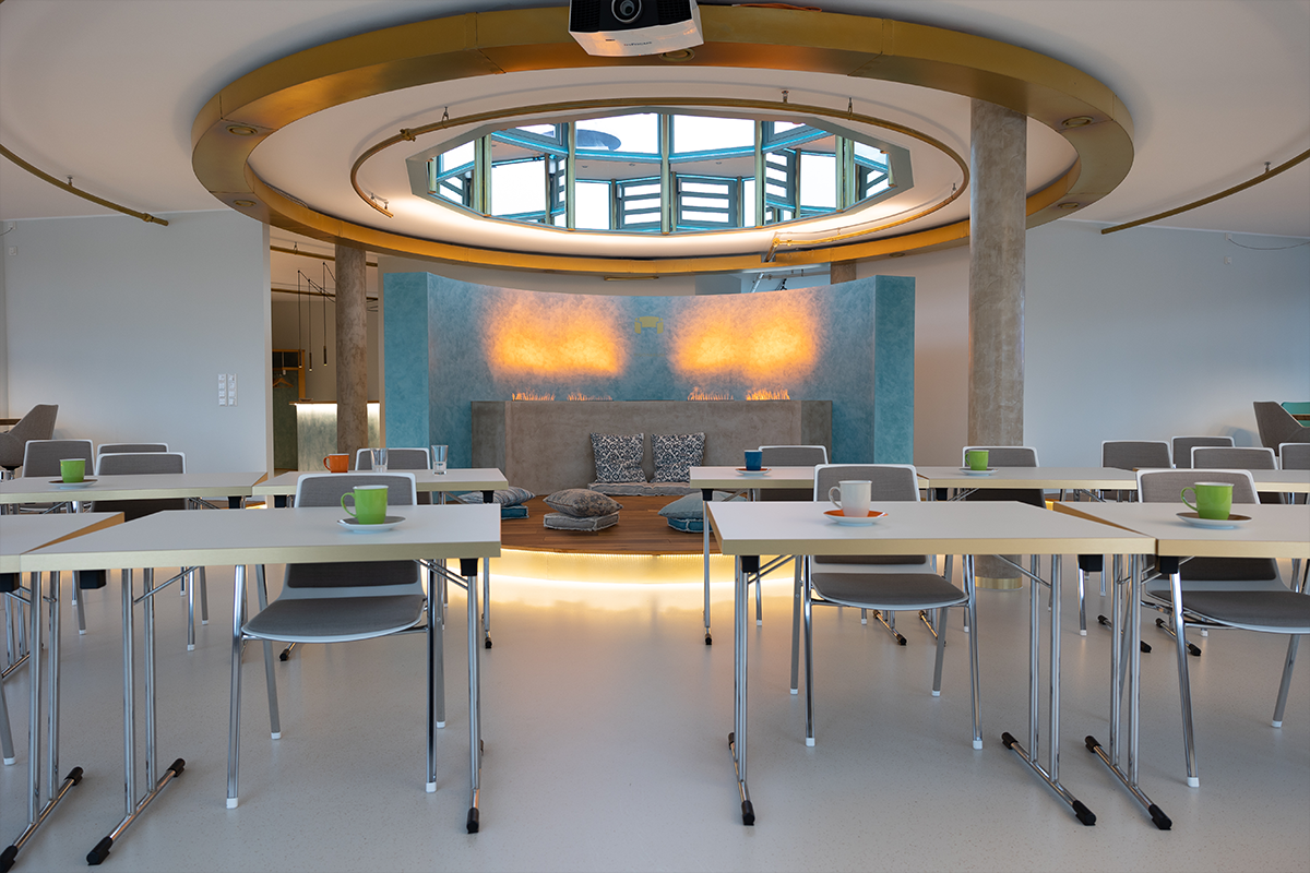 Ein Raum der eben nicht nur durch seine Funktionalität, sondern auch durch diesen beeindruckenden Ausblick überzeugt. Ob beim Lernen, Arbeiten oder Netzwerken – die Atmosphäre hier lädt dazu ein, tief durchzuatmen und sich auf das Wesentliche zu konzentrieren.