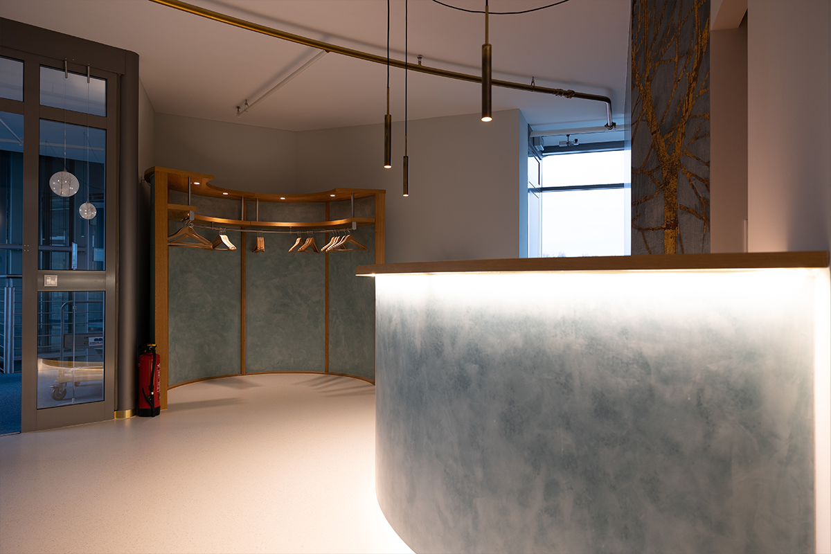 Durch sein Farbkonzept geht der Blick fließend aus dem erschafften Raum in die umgebende, freie Landschaft.